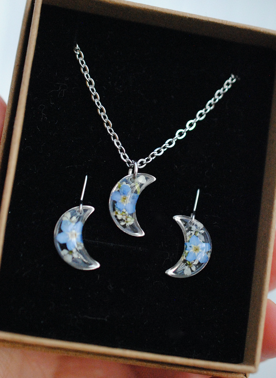 Näissä koruissa on käytetty aitoja Pohjois-Savon luonnosta poimittuja luonnonkukkia.